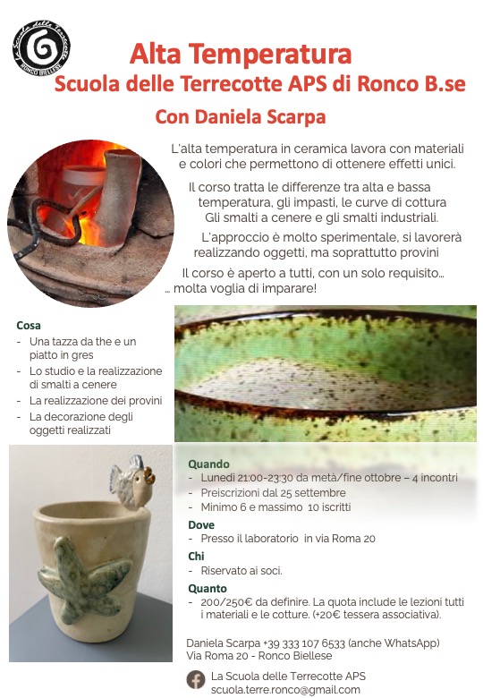 I corsi si svolgono presso la sede della Scuola delle Terrecotte, in via Roma 20, Ronco Biellese.