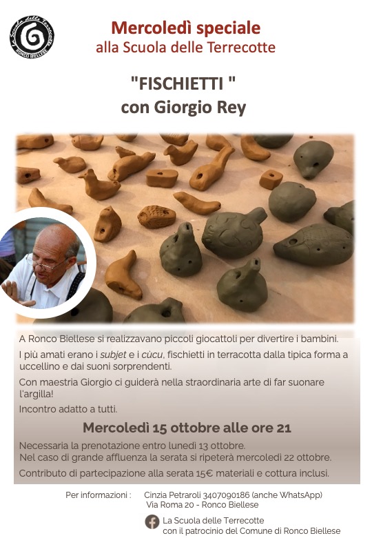 Con Giorgio Rey: corso dedicato alla realizzazione dei tradizionali fischietti in terracotta, tra artigianato e creatività.