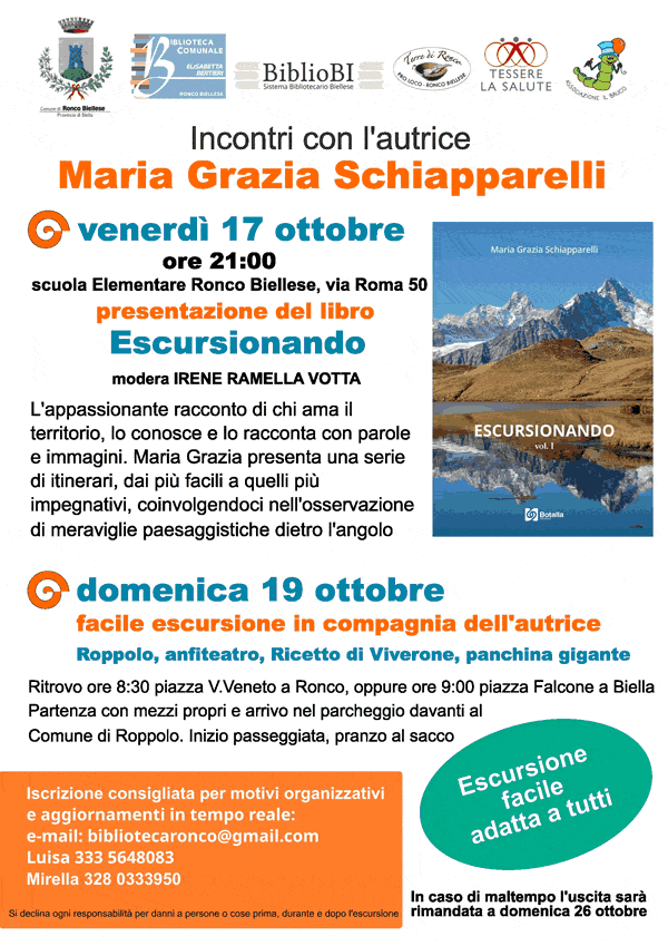 Incontri con l’autrice Maria Grazia Schiapparelli e Escursioni a Ronco Biellese