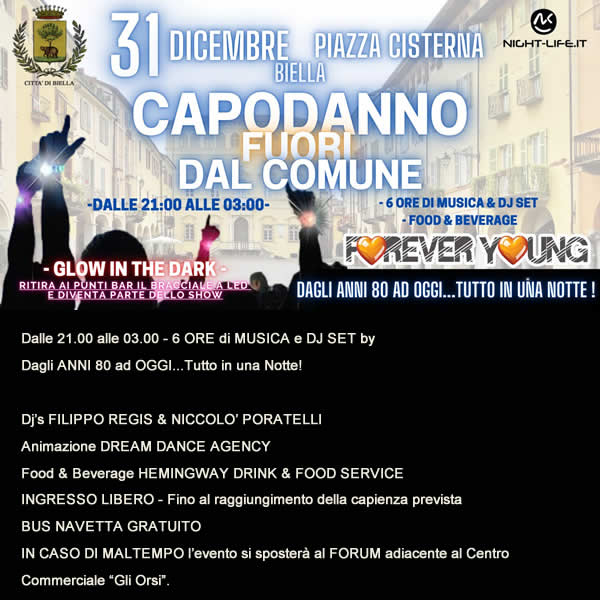 Il 31 dicembre Biella festeggia l’arrivo del nuovo anno con il Capodanno Fuori dal Comune. Dalle 21.00 alle 03.00 Piazza Cisterna ospiterà sei ore di musica e DJ set, con una selezione che spazia dagli anni ’80 a oggi.