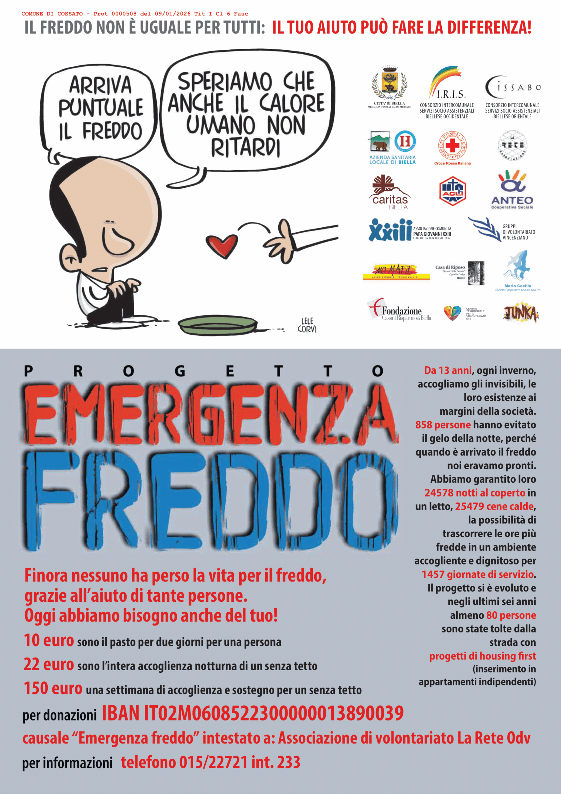Da tredici anni, ogni inverno, il progetto Emergenza freddo accoglie persone senza dimora offrendo un riparo sicuro nelle notti più difficili. Grazie al sostegno di tanti cittadini, 858 persone hanno trovato un letto, un pasto caldo e un luogo dignitoso dove trascorrere le ore più fredde.