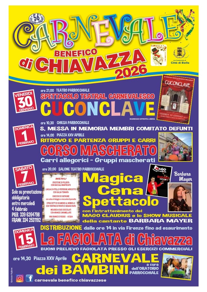 • Domenica 15 febbraio: Fagiolata di Chiavazza e Carnevale dei Bambini