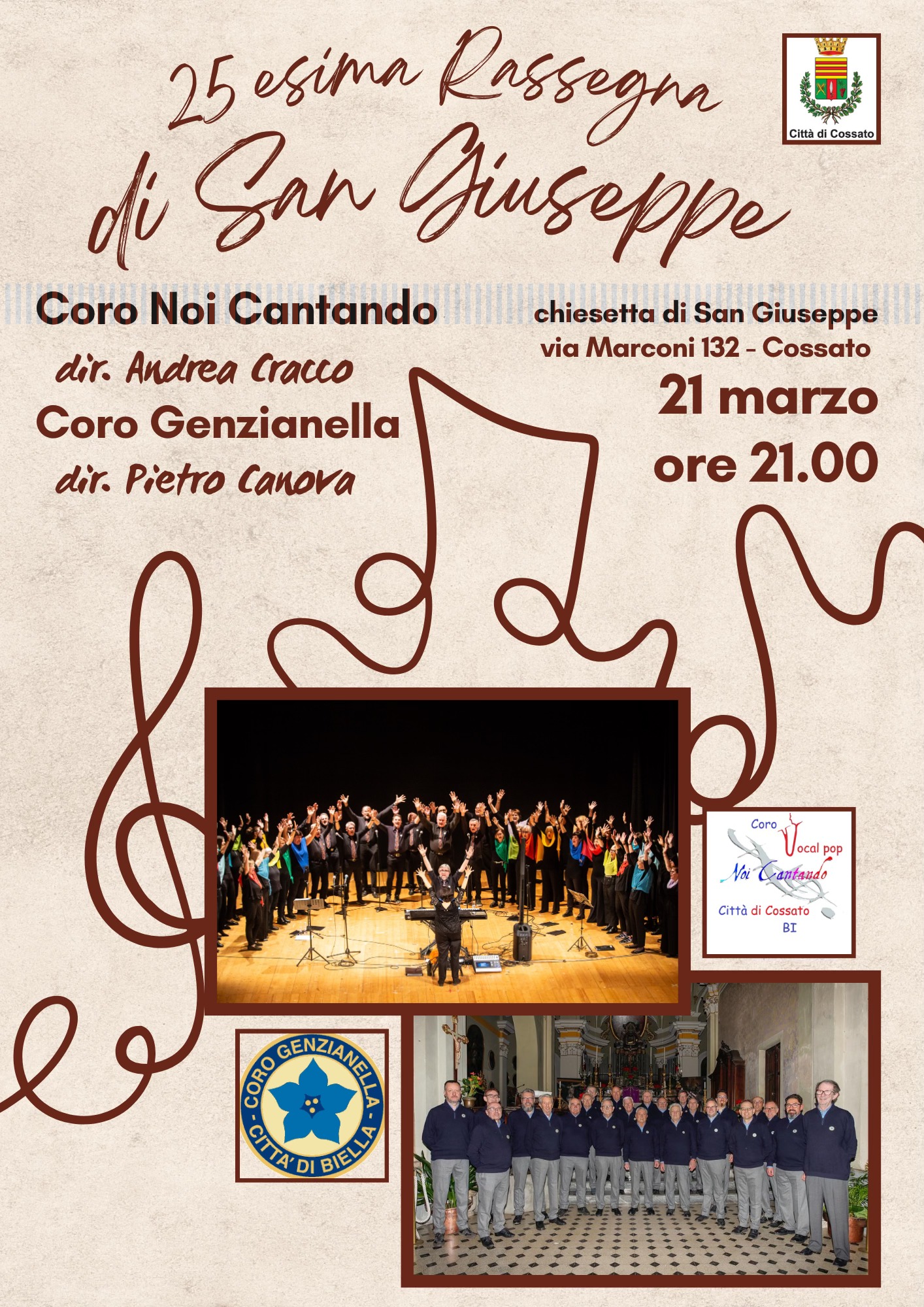 In concerto il Coro Noi Cantando (diretto da Andrea Cracco) e il Coro Genzianella (diretto da Pietro Canova), per una serata di musica corale tra tradizione ed emozione.